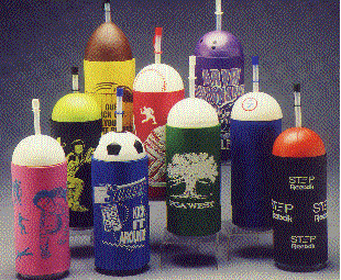 These Thermo Sport Top Bottles are available in either a 22 oz. or 32 oz version with a white bottle while the outside insulator is available in red, black, dark blue, burgundy, navy, lime green, gray, purple, light blue, hot pink, pastel aqua, spring green, burnt yellow, dark teal, turquoise, light yellow, light orange or burnt orange. Each bottle gives you a choice of 10 sport tops that include a choice of Soccer, Baseball, Thermo, Volleyball, Golf, Basketball, Football and Bowling. Also are tops in a Lotto and Bingo theme. The imprint on the 22 oz. bottle is 4 1/2" X 4 5/5/16" width per side. The 32 oz. bottle has an imprint area of 6" X 4 5/16" width per side. Minimum imprintable quantity is 100.