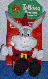Bugs Bunny, licensed by Looney Tunes, has been used with several promotions by various customers. Bugs, pictured below, measures 9" when he is sitting down. This Bugs Bunny was dressed in his Christmas finest as he posed for his picture. We can do custom talking pieces for your next promotion using your mascot or logo and make it speak to your customers. Give us a call at 206 285-5359 for information.