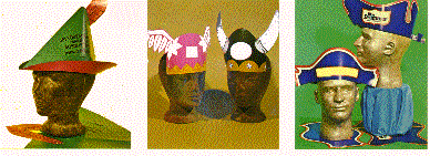 We have many stock theme paper hats that are great for an inexpensive giveaways. . Pictured below are just three of them. On the left is the Robin Hood with a 2 1/2" X 5" imprint area. The middle two Viking Hats both provide an oval imprint area of 2 1/2". The Colonial Tri Corner hat has an imprint area of 1 1/2" X 4" and the Patriot Hat has an imprint area of 1" X 6". Minimum imprintable quantity on these inexpensive hats is 1000.