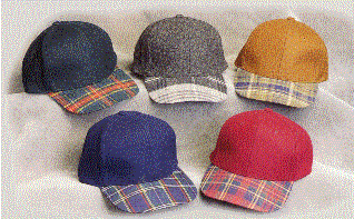 Our beautiful low profile fused buckram heavyweight melton hat has a wool crown and a choice of plaid bills. Each cap has a brass buckle with eyelet insert. The caps are available in colors of dark green, charcoal, carmel, maroon and navy.