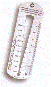 The Metal Thickness Gauge is made of .032 aluminium and is used for measuring stainlesssteel thickness. The size is 2 1/2" X 1 3/16" and it provides an imprint area of 2" X 5/8".Avaialable in Brown & Sharp gauge Brass, Copper or Aluminium/MFRS. standard steel. Custom configuartions are available. Minimum imprintable quantity is 100.