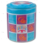 Left picture is the Jewish Star cookie jar, center is the Menorah and on the right is the Happy Chanukah jar.