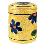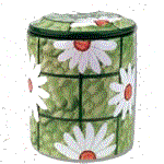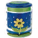 The cookie jar on the left is the Yellow Flowers, center is the Bowl of Flowers and the right picture is the Blue Daisies jar.