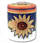 Left cookie jar is the Yellow Daisy, center is the Naples Sunflowers and on right is theOrchid jar.