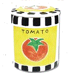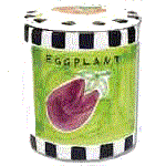 From left to right the cookie jars are Tomato, Eggplant and the Squash jars.
