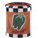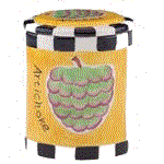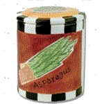 Cookie jar on left is the Bell Peppers, center is the Artichoke and right cookie jar is the Asparagus jar.