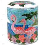 Cookie jars pictured here are the Flamingos and the Chicken jars.