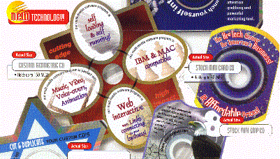 Did you know that we can do custom shaped CD's with your custom imprint and information on the CD ? The CD works on either PC or MAC, holds lots of data or music and can be custom created or can be done with a stock business introduction format. The minimum order is for only 250 CD's. They can be custom cut into any balanced shape. The CD's are playable in standard tray type or spindle type CD ROM drives. Not playable in a motor vehicle dashboard, stacker or jukebox type CD player