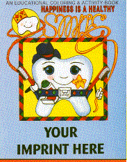 We have several coloring books that introduce youngsters to the dentist and their friendly office in a typical visit. Includes tips for healthy teeth. Has delightful characters and easy to read text. This 16 page 8 1/2" X 11" coloring book has a minimum imprintable quantity of 500.