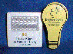 Here is a symbol of a great idea. Insert a battery and use the included magic ring or another piece of metal to make the bulb light up ! The optional imprint area is 1 1/2" diameter. Minimum imprintable quantity is 288.