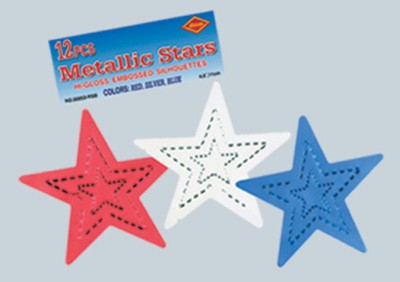 The #50853-RWB - 4 1/2" Metallic StarsCutouts are $ 1.40 each in the minimum of 12.