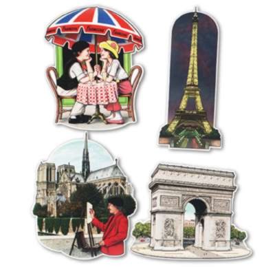 The #55416 - 16" French Cutouts are $ 7.40 each with four to a pack and they are printed on both sides.