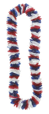 On the left is the #66351L50 - 2" X 36" Red, White and Blue Leis and they are priced at $ .85 each in the minimum order of 50. The right picture is the #66366-100 - 2" X 36" Soft-Twist Patriotic Poly Leis that is $ .59 each in the minimum order of 50.