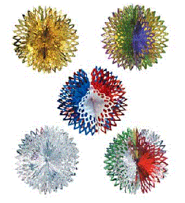 The #50501-RWB - 8" Shimmer Ball is $ 1.45 each in the minimum quantity of 12 and also available is the #50502-RWB - 16" Shimmer Ball that is $ 4.15 each in the minimum of 12. The French Red, White and Blue 8" Shimmer Ball is in the center of the picture.
