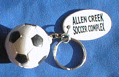 Both the Volleyball and Soccer key chains are 1 3/8" X 1 3/8" and provide an imprintable White disc for your imprint. Also available in Football. Tennis and Basketball key chains. Minimum imprintable quantity is 300.