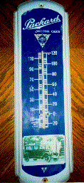 Thanks to Bill Gerrard of Berkley, Michigan for contributing this picture of an advertising thermometer with a Packard Motor car. This thermometer appears to be from 1912 to 1915.