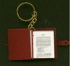 Here is the world's smallest bible !. Attached to a key chain it is great for awards for bible memory work, Daily Vacation Bible School awards and perfect attendance. When closed it measures 1 1/4" X 1 1/2". And yes you can read each page with either real good eyes or a magnifier. Minimum 250 on this great item.