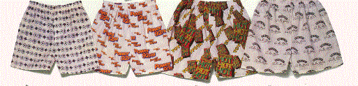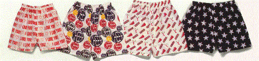 You can customize your shorts with a all-over imprint. Pictured below are a few examples of 100% heavyweight cotton, 1 1/2" plush elastic that are available in sizes of small thru extra large. Minimum custom imprint order is 150.