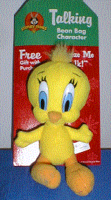 Tweety Bird, licensed thru Looney Tunes, was an item that we recently did for a customer. Tweety Bird measures 7" in height. We can customize your mascot or logo and with a chip inside it can talk to your customers when it is squeezed ! Give us a call at 206 285-5359 for more information on how we may be of help to you.