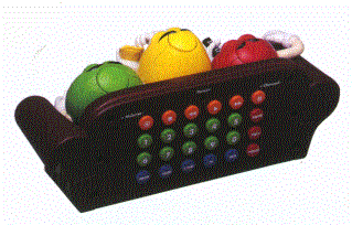 This universal remote is for TV, VCR, cable or satellite. It has an extensive library of programming codes. The integrated M&M's brand character buttons control the main functions and trigger sound effects. The size is 7 1/2" X 4" X 5" and it provides an imprint area of 1" X 2". In the minimum quantity of 25 units it sells for $ 51.00 each plus set-up charge and freight.