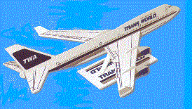 The Boeing 747-300 Jumbo jet is an eye catching glider with a swept wingspan of 8 1/2" and comes with a display stand for your plane when you are not flying it. The imprintable area is 6" X 11 3/5" and the minimum imprintable quantity is 5000 with the price on the minimum being less than 70 cents a plane.