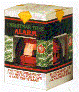 This beautiful ornament is a supplemental alarm used on the tree during the holidays and can provide those few precious seconds needed to prevent a tragedy from occuring. This attractive ornament is a HEAT-SENSING ALARM that works on a 9-volt battery and emits a 110 decibel siren at temperatures above 120 degrees fahrenheit..