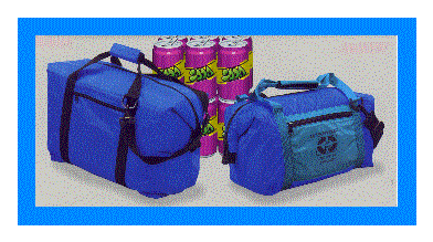 Here are two kooler bags that you can keep cool even on the hottest day. The bag on the left is a 15 3/4" wide by 11 1/4" high by 11 1/4" in depth. It is available in Royal Blue witha Black strap, Navy Blue with Teal pocket and Black Strap. It has an imprint area of 5" by 5". The bag on the right holds a 12 pack of beverages and is a 11 1/2" wide by 6 1/2" by 7" in depth. The imprint area is 5" by 3". It is also available in the same colors as the larger bag on the left. Minimum imprintable quantity is only 25.Each bag is insulated and water tight, heat sealed inside vinyl lining elimanets leaking and has an adjustable strap for shoulder use.