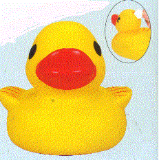 On the top left ist he terra cotta Ducky bank that measures 5" tall with an imprint area of 1 1/2" in diameter. The Yellow duck is 4 1/2" long and provides an imprintable area of 1 1/2" in diameter. The granite house in the bottom area shows the front and back of the bank. The bank measures 3 3/4" long and has an imprintable area of 1 3/4" X 1 3/8". Minimum imprintable quantity is 72.