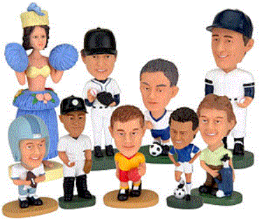 These custom Bobbleheads can range in size from 3 1/2", 4", 6" and 7" tall. They can be customized with your custom design. Or you can use the existing model for your particular need. Many sport shapes are in stock and available for your custom imprint. These bobbleheads can be imprinted in up to 6 colors and the minimum is 250 bobbleheads.