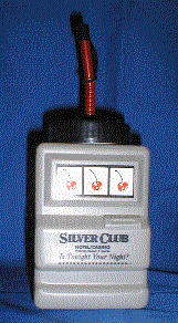 Here is a water bottle in the shape of a slot machine. The minimum imprintable quantity is 250.