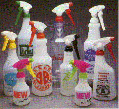 Pictured below are our imprintable Sprayer Bottles that are available in sizes of 8 oz., 16 oz., 22 oz., 24 oz. and 32 oz. The 8 oz., 22 oz. and the 24 oz. are available only in translucent. The 16 oz. is available in white and translucent. The 32 oz. is available in white, translucent and crystal clear. Trigggers are available in combinations of white/white, red/white, blue/white, black/white and green/white. Minimum imprintable quantity is 100.