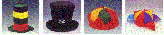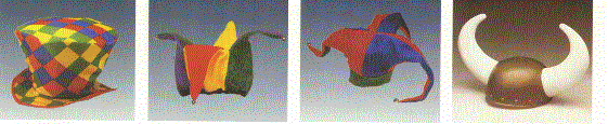 Illustrated below are the Wondeland Hat which is reversible (minimum imprintable quantity 72), the Jester Hat (minimum imprintable quantity is 72), the Deluxe Jester (minimum imprintable quantity 72) and the Viking Helmet (minimum imprintable quantity is 72).