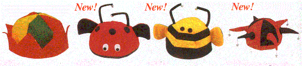 Pictures below illustrate the Kool Kat which comes in assorted colors (minimum imprintable quantity is 144), the Mad Hatter which is available in Red, Blue, Black and Green (minimum imprintable quantity is 72), the Jughead Hat with the colors pictured as shown (minimum imprintable quantity is 72) and still another version of the Jughead with Bells aslo pictured with the available colors (minimum imprintable quantity is 72)