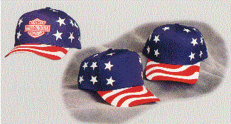Here are both a 5 panel and 6 panel Stars & Stripes hat of cotton twill and a plastic snap back. These hats really look great with a custom imprint !!!