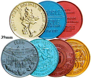 Presented below are example and information on the various types of coins that we can do for commemorative purposes, awards or souvenirs. If you would like a free catalog on coins you are invited to call 800 960-9080 or 206 285-5359 (Seattle) or email us at donace@promotionalproductsandideas.com or don_shepherdson8@msn.com