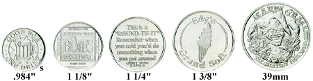 These colorized aluminum coins area most affordable and attractaive choice for Anniversary Mailings, Trade Shoe Hand-outs, and High Volume Promotions. They can be custom imprinted and used for just about any time of event.