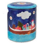 Cookie jars pictured from left to right are the Santa Boat, Reindeer Lights, Gingerbread Tree and the Feliz Navidad.