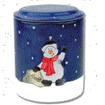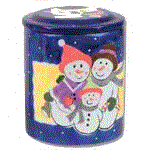 Left cookie jar is the Snowman, center is the Happy Holidays and on the right is the Small Snowman.