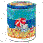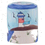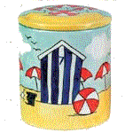On the left is the Beach Scene cookie jar, center is the Lighthouse and on the right is the Beach Umbrellas jar