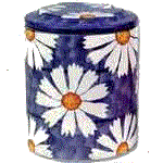 The cookie jar on the left is the Yellow Flowers, center is the Bowl of Flowers and the right picture is the Blue Daisies jar.