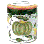 From left to right the cookie jars are Tomato, Eggplant and the Squash jars.