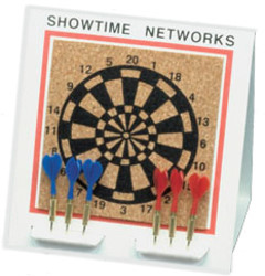 The Executive Dart set measures 5" X 5" and can be set up on a desk or hung on a wall. It comes with six darts in a case and the case provides an imprint area of 2" X 3". Minimum order is 50.