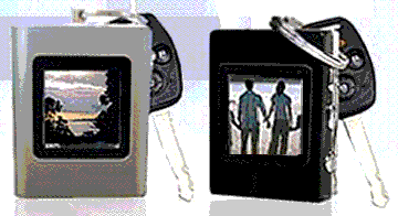 The Digital Photo Key Chain is 1 3/4" long X 2 3/4" high and its 1 1/2" screen can hold 107 of your favorite full color pictures. Plus you can have your custom imprint in the 1" X 1/4" area on the front of the product. Just plug into your computer and put your favorite pictures onto the key chain. It automativcally downsizes the pictures. Minimum order is 100.