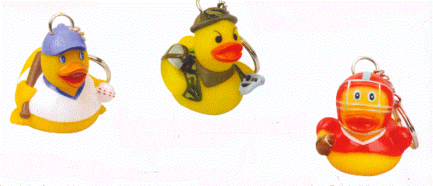 We have pictured below many of our Rubber Duck Keytags and also our Rubber Duck Bathtub Plugs. The minumum imprintable quantity on any of these items is 50. Have a question, need current pricing or to place an order please contact us at 800 960-9080 206 285-5359 or email us at donace@promotionalproductsandideas.com or don_shepherdson8@msn