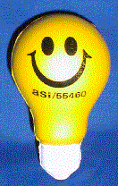 The light bulb key chain has an imprintable area of 1 1/8" diameter and the overall size is 1 3/8" X 2 9/16" and is available in white, blue, green, yellow, orange and black. Minimum imprintable quantity is 500.
