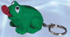 The Roll Tongue Frog Key Chain rolls his tongue out when you squeeze him. They measure 4 1/2" long X 11/2" high and the imprint area is 1 1/8" wide X 1/2" high. Minimum custom imprintable order is 250.
