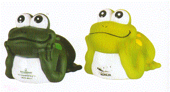 We have pictured below many of the Frog related items that can be custom imprinted for your business or organization. For current pricing and any questions you may have about our Frog items you are invited to please give us a call at 800 960-9080 or 206 285-5359 or email us at donace@promotionalproductsandideas.com or don_shepherdson@msn.com and we will be glad to send you information on the frog items that you have an interest in.