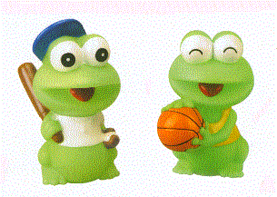 The Sitting Rubber Frogs are available in either the Green or Neon Green colors. They are 3 1/2" X 3" X 3 3/4" and provide an imprint area of 1" wide X 1/2" high. They are floatable, balanced and weighted. Minimum imprinted quantity is 50.