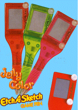 The Monopoly Micro pen provides an imprint area of 3/8" X 5/8". The Jelly Color Etch A Sketch and the standard Etch A Sketch both have an imprint area of 5/8" X 5/8".