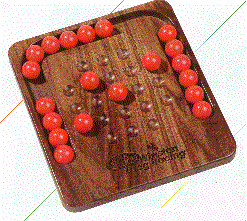 Here is a collector's edition of a game played by millions. Each recess, except the center, contains one ball when you begin play. The challenge ... jump over adjacent balls and remove them until only one remains in the center. It may seem hard , but the game is very difficult to win. The overall size is 9" X 10" and the area at the bottom provides an ample custom laser imprintable space of 4" X 2". The minimum custom imprintable quantity is only 12.